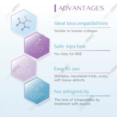 - Non-antigenic (Telopeptides are absent due to treatment with pepsin)