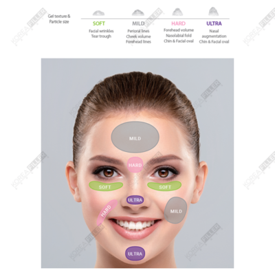 Cara Hard: This new generation injection booster is ideal for skin rejuvenation and is injected into the middle to deep dermal layers. It contains pure cross-linked hyaluronic acid and is a clear, colorless gel without impurities. It can eliminate insufficient lip volume, irregularities in the peri-labial area, wrinkles of the eyebrows, and much more.