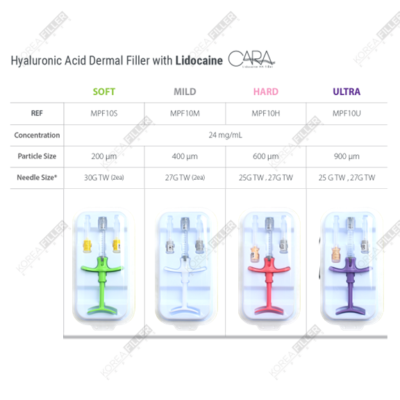 Cara Mild: This hyaluronic acid-based booster is specially designed to correct wrinkles in the upper epithelium of the skin and the middle subcutaneous layer. Created using Hy-BRID technology, it offers optimal viscoelasticity and a long-lasting effect.