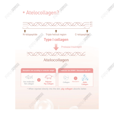 - COLLADEW is a tissue supplement with superior biosorption properties. It comprises high-purity collagen, which replenishes the collagen that has been lost or damaged due to medical procedures or surgeries. The primary ingredient in this Korean medical device, approved by the KFDA, is Atelocollagen. Atelocollagen is a form of collagen derived from animals or fish with immunogenic components removed, thereby eliminating the risk of immune rejection. In essence, it’s a pure form of collagen that’s harmless to the human body and is 99% identical to the collagen found in the skin’s epidermis.