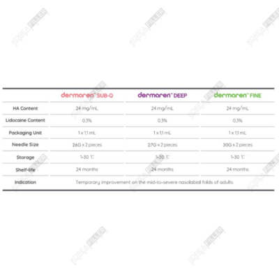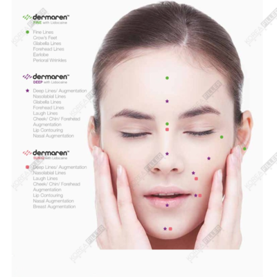 Dermaren Deep: Dermaren Deep Plus is a gel-based intradermal filler that is part of the Dermaren line. It is ideal for smoothening nasolabial folds, marionette wrinkles, contour correction, and adding volume to the lips. The presence of lidocaine in the filler ensures a pain-free cosmetic session.