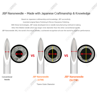 The fusion of artistry and technology has resulted in this ultra-fine needle, designed to decrease patient discomfort during needling and reduce bleeding and swelling. Thanks to the specialized Micron Sharpness technique, this needle, with its ultra-thin wall, significantly reduces friction resistance, leading to decreased pain and bleeding during procedures. It allows for the injection of high-viscosity solutions using exceptionally fine needles.