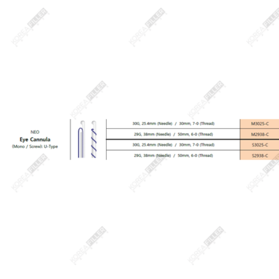 NEO Eye Cannula (Mono): U-Type | M2938-C 29G 38mm 50mm 6-0, M3025-C 30G 25mm 30mm 7-0 |