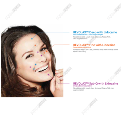 Revolax Deep with Lidocaine is a thicker and longer-lasting gel than Revolax Fine, and is used for treating deeper wrinkles such as nasolabial folds, as well as for enhancing the cheeks, chin, and lips.