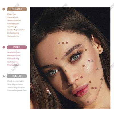 • Forehead LinesVolifil Sub-Q: Volifil Sub-Q is the thickest and longest-lasting dermal filler in the Volifil range, suitable for deep wrinkles and augmentation of the nose, cheeks, jawline, and chin. It is an ultra-high purity HA dermal filler that lasts for approximately 9-12 months and is effective for Sub-Q areas and creating deep and pronounced facial structures.